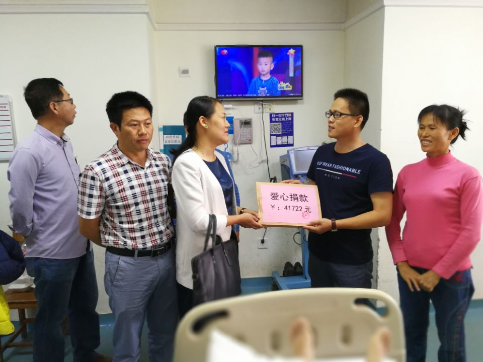 吳海召激動(dòng)地說(shuō):“善款有價(jià),愛心無(wú)價(jià)。綠港集團(tuán)和經(jīng)開區(qū)的捐款正體現(xiàn)中華民族團(tuán)結(jié)互助的精神和無(wú)私博愛的優(yōu)良傳統(tǒng),非常感謝所有愛心人士的熱情幫助”。蒙福東副總經(jīng)理讓家屬們?cè)鰪?qiáng)信心,安心照顧好吳海有,有困難及時(shí)告知公司,綠港集團(tuán)一定盡力協(xié)調(diào)解決,能幫就幫。