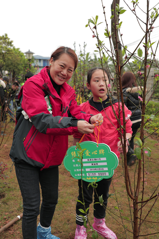 當(dāng)天,綠港集團(tuán)還舉行了植樹護(hù)綠活動(dòng)。在細(xì)雨紛飛中,家長和孩子們一起動(dòng)手,分工協(xié)作。大家栽得認(rèn)真,干得賣力,揮鍬鏟土、挖坑、栽樹、蓋土、澆水,各個(gè)環(huán)節(jié)銜接有序,配合默契。整個(gè)植樹活動(dòng)現(xiàn)場(chǎng)熱火朝天,歡聲笑語不絕于耳。經(jīng)過一個(gè)多小時(shí)的揮汗奮戰(zhàn),上百棵小樹苗整齊的“站”在了綠港·國際中心桃樹林中。放眼望去,樹苗迎風(fēng)挺立、搖曳生姿,大家看著這一片自己親手種下的樹苗,無不露出幸福的笑容,紛紛與小樹苗合影。綠港集團(tuán)下屬榮鑫公司副總經(jīng)理唐欽月表示:“植樹造林是一項(xiàng)利于當(dāng)代、造福子孫的偉大工程。綠港集團(tuán)成立五年來,每年都積極組織員工開展義務(wù)植樹造林活動(dòng)。今天我們帶上孩子一起參加義務(wù)植樹活動(dòng),不僅增強(qiáng)了職工們生態(tài)環(huán)境保護(hù)的責(zé)任感,也給孩子們樹立了關(guān)心、愛護(hù)以及主動(dòng)參與家園建設(shè)的意識(shí)和榜樣?!?nbsp;