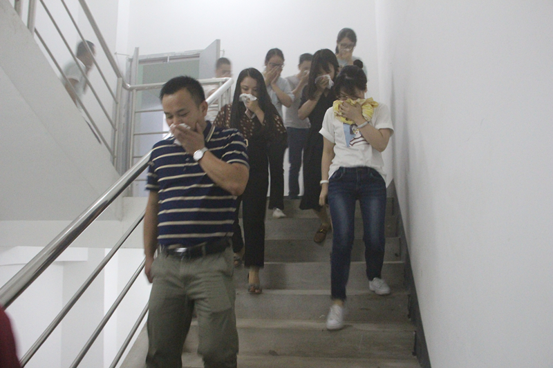當(dāng)天下午15:00,隨著模擬煙霧的放出,模擬火災(zāi)警報拉響,各參加火災(zāi)疏散演習(xí)的人員按照既定的撤離路線,在工作人員的指揮下迅速撤離“事故”現(xiàn)場,撤離過程中大家紛紛用濕毛巾捂住自己的口鼻,弓著腰沿著墻壁迅速撤離到一樓安全地點,整個撤離過程不到2分鐘。經(jīng)過周密的部署和安排,疏散演示實現(xiàn)了安全、有序、及時撤離的預(yù)期目標(biāo)。消防培訓(xùn)老師對演練效果給予充分肯定,并圍繞消防安全“四個能力”、“四懂四會”為大家講解了消防知識,詳細(xì)介紹了如何撲滅初期火災(zāi)及一些注意事項,并重點講解了在辦公人員密集的場所發(fā)生火災(zāi)時如何逃生的知識。