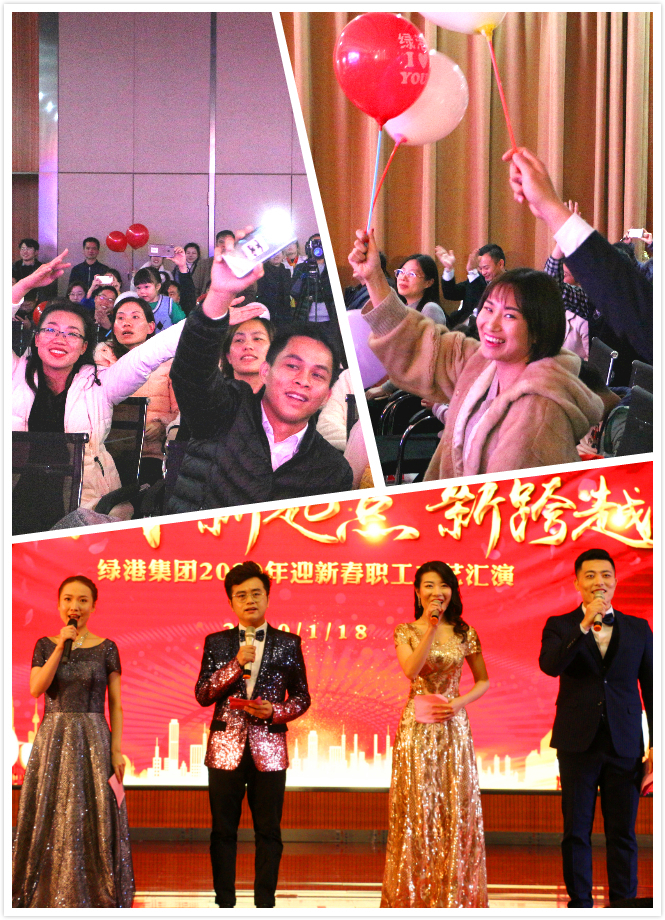 隨后,集團總部喜慶歡騰的舞劇《鼠舞龍騰鬧新春》拉開了綠港集團2020年職工文藝匯演的序幕,集團領(lǐng)導(dǎo)班子,集團各部門、各子公司干部員工接連登場,以17個內(nèi)容豐富、積極向上的文藝節(jié)目同賀新春。通過舞蹈、音樂情景劇、歌曲、小品、詩朗誦、文化展示等形式,充分展現(xiàn)綠港鐵軍勇于拼博、團結(jié)奮進的風(fēng)采和廣大職工團結(jié)上進的精神風(fēng)貌。《綠港建設(shè)者》以鏗鏘有力的舞蹈,表現(xiàn)出奮戰(zhàn)在經(jīng)開區(qū)建設(shè)一線的綠港人攻難克艱的決心和擔(dān)當(dāng)?shù)臍馄?;科巨公司帶來的《大話西游之治理黑臭水體》則講述了綠港鐵軍在打贏黑臭水體攻堅戰(zhàn)中,挺身而出,爭做攻堅排頭兵的故事;集團營銷管理中心的歌曲串燒、科巨公司《 We Will Rock You》、嘉通公司《上海灘》和榮鑫公司的《榮鑫似首歌》不僅讓我們一睹國風(fēng)、爵士風(fēng)、上海灘和懷舊港風(fēng)的風(fēng)采,一句“綠港飛得更高”的高歌更是把全場氣氛帶到了最高點!舞蹈《芒種》、《橋邊姑娘》和萬方公司《溜溜的山寨溜溜的醉》是柔情萬種,百轉(zhuǎn)千回;小品《你有沒有在乎過我的感受》、《家有兒女》取材日常生活,表達了家和百事興的主題;九略公司《中華攢 瑰寶情》通過對中華傳統(tǒng)文化的展示,激發(fā)了廣大職工的文化自信;集團辦公室、中港興公司聯(lián)合準(zhǔn)備的節(jié)目《我們是一家人》通過手語舞蹈表現(xiàn)出集團公司團結(jié)一心,同事間真誠有愛的良好面貌,讓大家沉浸在一片愛的海洋之中;嘉通公司的朗誦《青春萬歲》則透過稚嫩的童聲帶大家重返美好的青蔥歲月。各節(jié)目精彩紛呈,引得臺下觀眾呼聲連連。最后,節(jié)目表演在集團公司領(lǐng)導(dǎo)班子帶來歡樂活潑的舞蹈《愛》中告一段落,現(xiàn)場四處洋溢著歡樂祥和的氣氛。