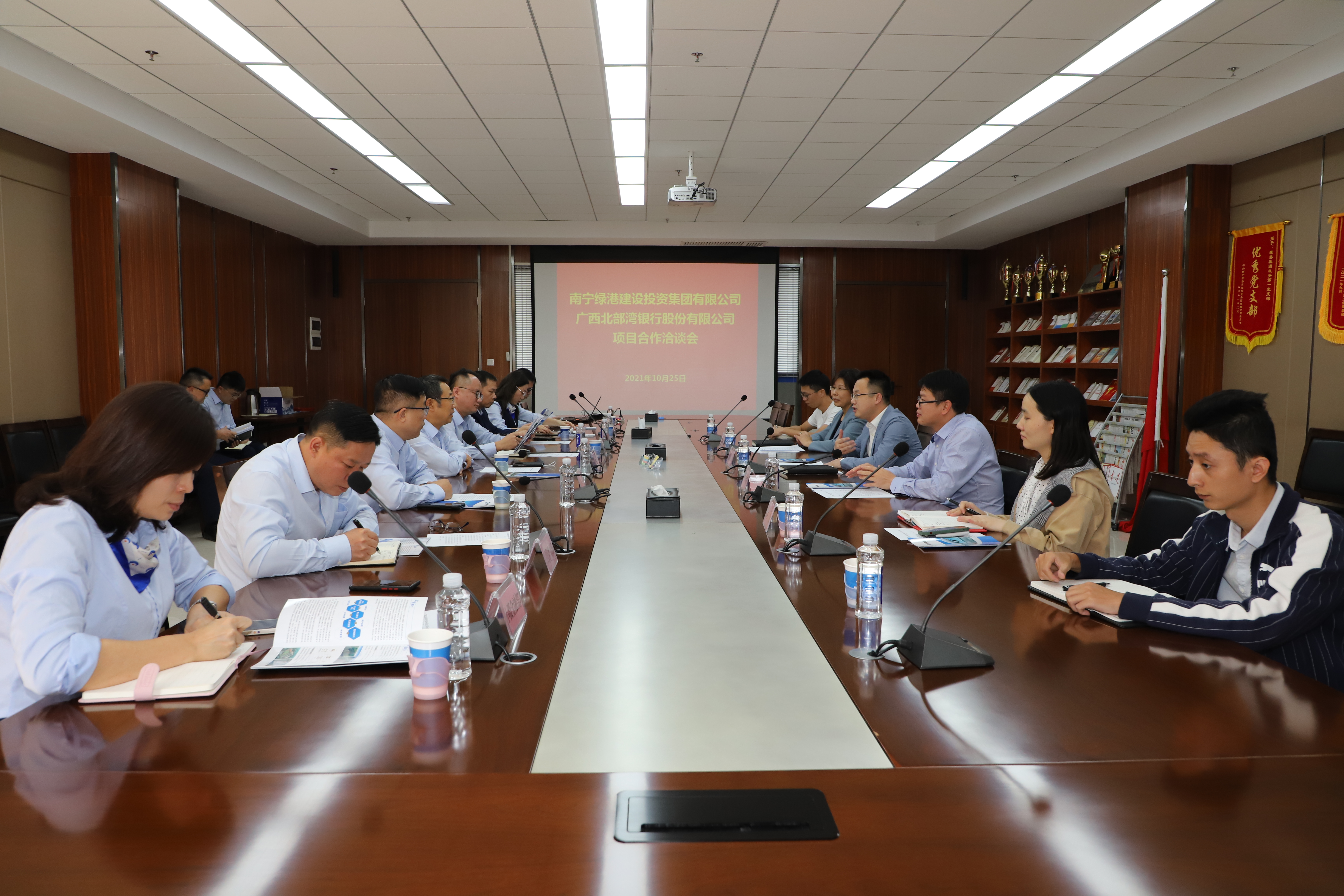 10月25日,廣西北部灣銀行黨委副書記、行長紀(jì)志順,行長助理、營業(yè)部總經(jīng)理黃林平等一行到訪綠港集團(tuán),雙方就進(jìn)一步深化務(wù)實(shí)合作以及未來業(yè)務(wù)發(fā)展方向等方面進(jìn)行洽談,綠港集團(tuán)黨委書記、董事長龔國強(qiáng),黨委副書記、總經(jīng)理鄧?yán)^慧,財(cái)務(wù)總監(jiān)關(guān)月娥及融資管理部相關(guān)人員參會。