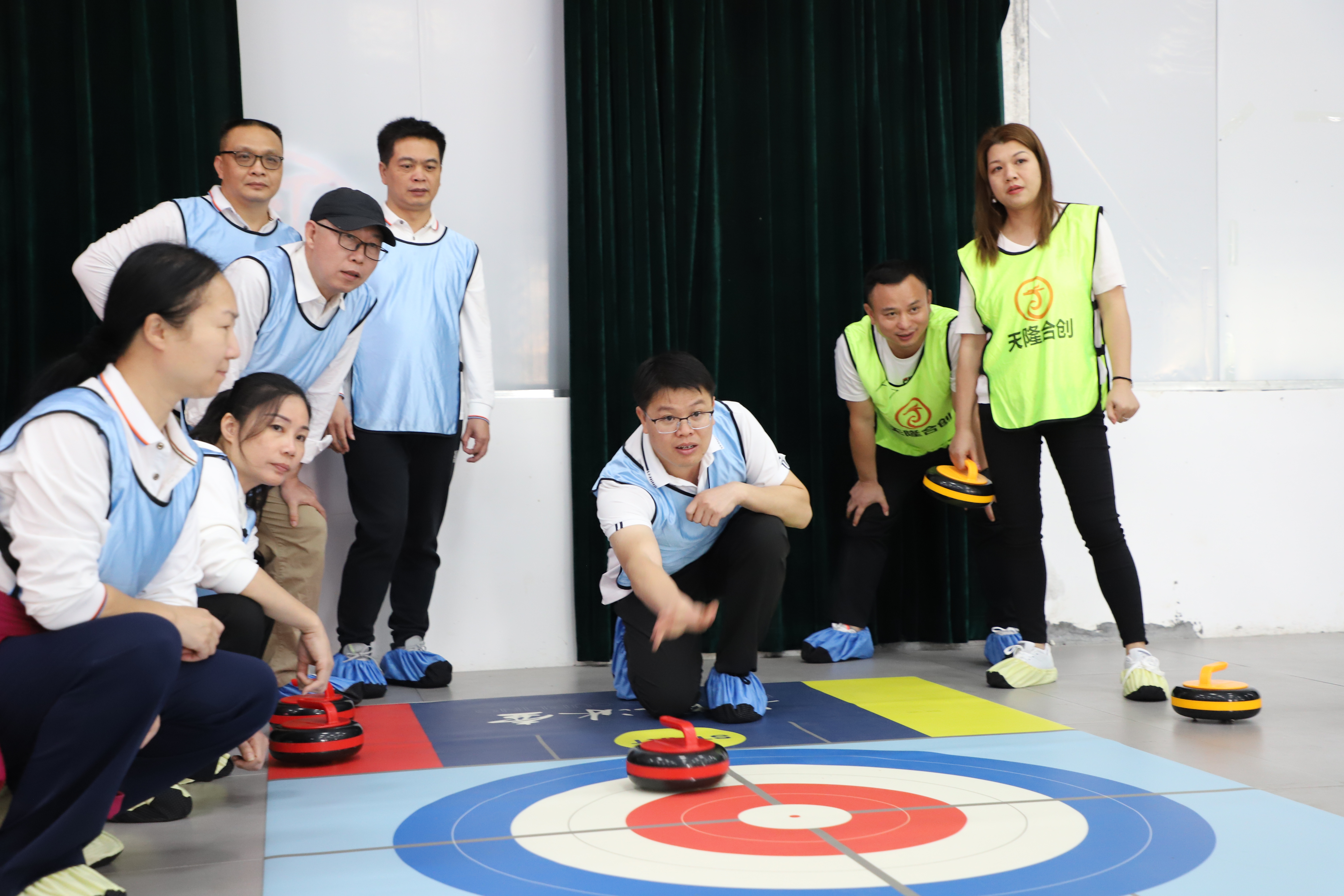 當(dāng)天下午,參訓(xùn)人員分成六個小分隊開展了冰壺素質(zhì)拓展比賽。手握把手、單膝觸地、精準(zhǔn)一推……比賽現(xiàn)場,選手們?nèi)褙炞?,和隊友商討?zhàn)術(shù)、默契配合,大家你來我往、斗智斗勇,每一次冰壺相互碰撞都激起一片歡呼聲和掌聲,充分展現(xiàn)出綠港集團(tuán)中高層管理著積極向上、奮力拼搏、團(tuán)結(jié)協(xié)作的精神風(fēng)貌。