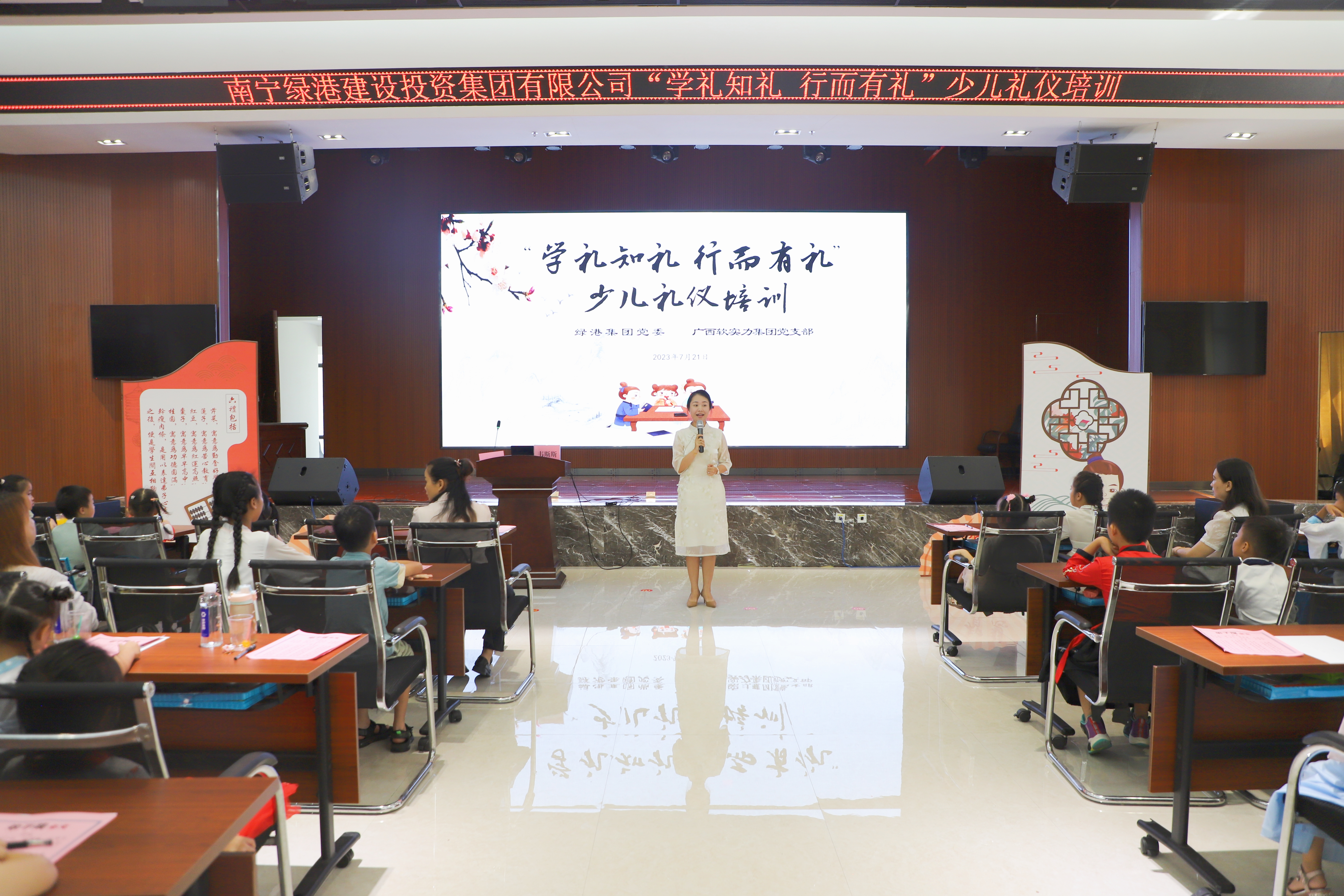 為深化拓展新時(shí)代文明實(shí)踐活動(dòng),更好地傳承和弘揚(yáng)優(yōu)秀中華文化,加強(qiáng)未成年人思想道德教育,讓孩子們從小講文明、知禮儀,提升素養(yǎng)。7月21日,綠港集團(tuán)黨委、工會(huì)、關(guān)工委聯(lián)合組織開展學(xué)禮知禮·行而有禮”少兒禮儀培訓(xùn)為主題的暑期學(xué)堂活動(dòng)。集團(tuán)黨委委員、副總經(jīng)理黃麗琴致辭。活動(dòng)共有60多位職工及少兒參加。