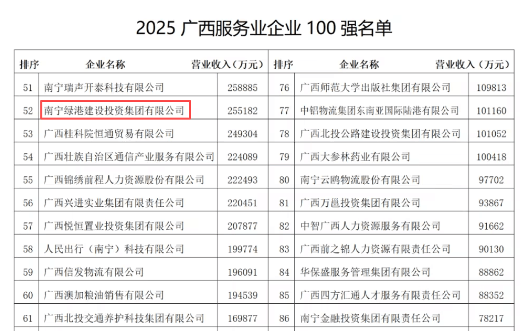 四度登榜!綠港集團(tuán)榮登2025廣西服務(wù)業(yè)企業(yè)100強(qiáng)榜單